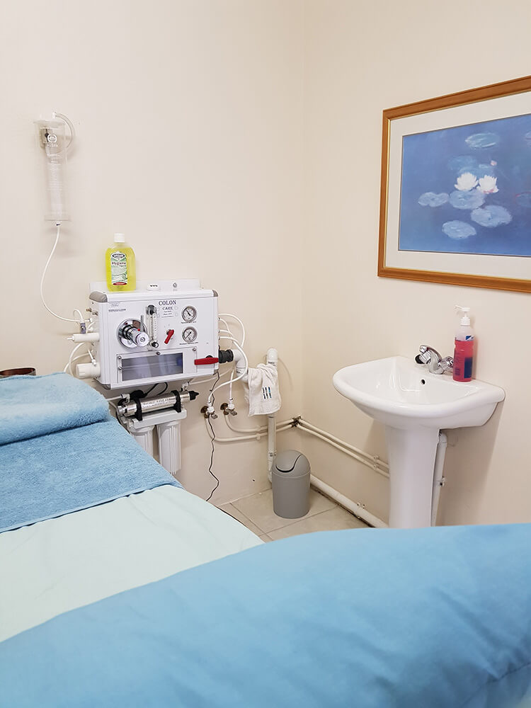 The therapy involves the introduction of 100% purified warm water into the colon which flows slowly into the colon under low pressure via a small tube and disposable speculum. The water is then rinsed out gently flushing out the waste matter and residue. This is done repeatedly until the colon is clean. The equipment used in the procedure is a modern state of the art machine with a completely closed system with the waste being discreetly flushed out directly into the waste system. There is no contact with body fluids and there is absolutely no odour.